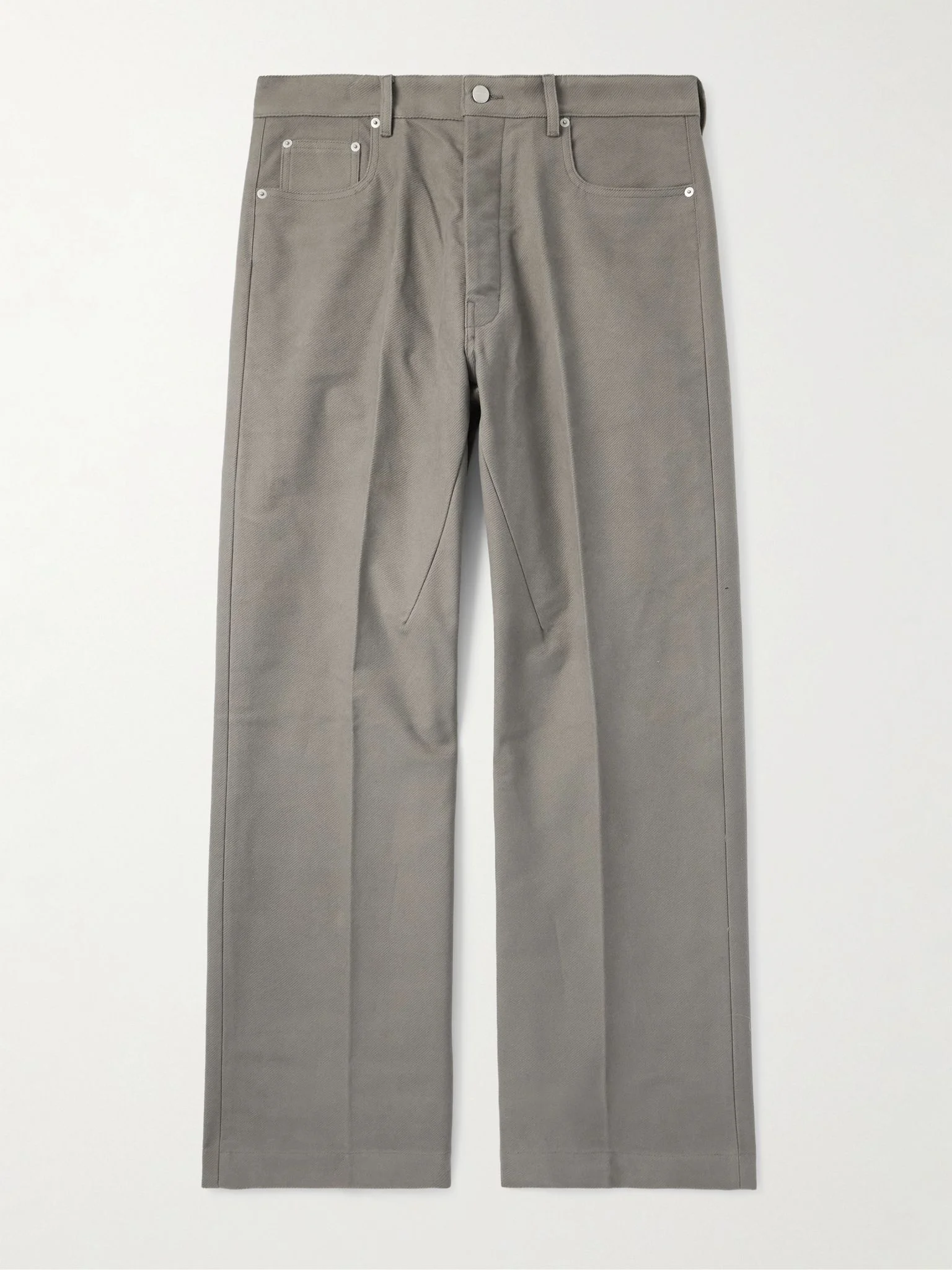 Geth Wide-Leg Brushed Organic Cotton-Twill Trousers Gray
