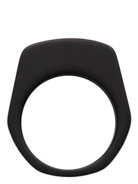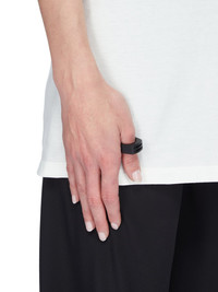 RICK OWENS SS24 LIDO GRILL RING IN BRASS THIS GRILL RING IS A THICK BAND WITH TWO GRILL OPENINGS. IT HAS THE RICK OWENS LOGO ENGRAVED ON THE BACK. THIS JEWLERY PIECE HAS A MATTE BLACK FINISH - COLOR: BLACK - MATERIAL: 100% BRASS - AVAILABLE IN SIZES 52 TO 58 (52-54 SUGGESTED FOR WOMEN AND 56-58 SUGGESTED FOR MEN)
