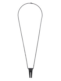 RICK OWENS OPEN TRUNK CHARM IN BRASS THIS OPEN TRUNK CHARM NECKLACE HAS A SMALL GEOMETRIC TRUNK SHAPE CHARM WITH BEVELED EDGES AND AN OPEN FACE CENTRE SLIT, HANGING FROM A CHAIN NECKLACE. IT HAS THE RICK OWENS LOGO ENGRAVED ON THE BACK - COLOR: BLACK - MATERIAL: 100% BRASS