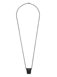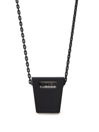 RICK OWENS SS24 LIDO DOGTAG IN BRASS THIS DOGTAG CHARM NECKLACE HAS A SMALL GEOMETRIC TRUNK SHAPED CHARM ENGRAVED WITH SUPERHUMAN, HANGING FROM A CHAIN NECKLACE. IT HAS THE RICK OWENS LOGO ENGRAVED ON THE BACK THIS JEWLERY PIECE HAS A MATTE BLACK FINISH - COLOR: BLACK - MATERIAL: 100% BRASS - CHARM LENGTH 3CM / CHAIN DROP 33,5CM