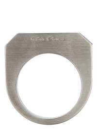 RICK OWENS BEVELED RING IN BRASS THIS BEVELED RING IS A THICK BAND WITH BEVELED EDGES. IT HAS THE RICK OWENS LOGO ENGRAVED ON THE BACK. THIS JEWLERY PIECE HAS A SEMI-SHINY BRUSHED PALLADIUM FINISH. COLOR: PALLADIO MATERIAL: 100% BRASS