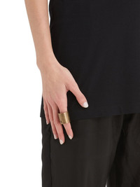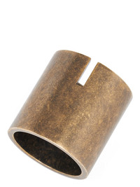 RICK OWENS SLITTED THUMB RING IN BRASS THIS SLITTED THUMB RING IS A WIDE TUBE SHAPED BAND WITH A SLIT NOTCHED FROM THE CENTRE FRONT. IT HAS THE RICK OWENS LOGO ENGRAVED ON THE BACK. THIS IS THE DARK BRONZE VERSION. THIS JEWELRY PIECE HAS A MATTE DARK BRONZE FINISH. THIS FINISH IS OBTAINED BY DARKENING A BRONZE COLOR GALVANIZATION, THE RESULT IS IRREGULAR MEANING EACH PIECE HAVE ITS OWN UNIQUE SHADINGS. - COLOR: DARK BRONZE - MATERIAL: 100% BRASS