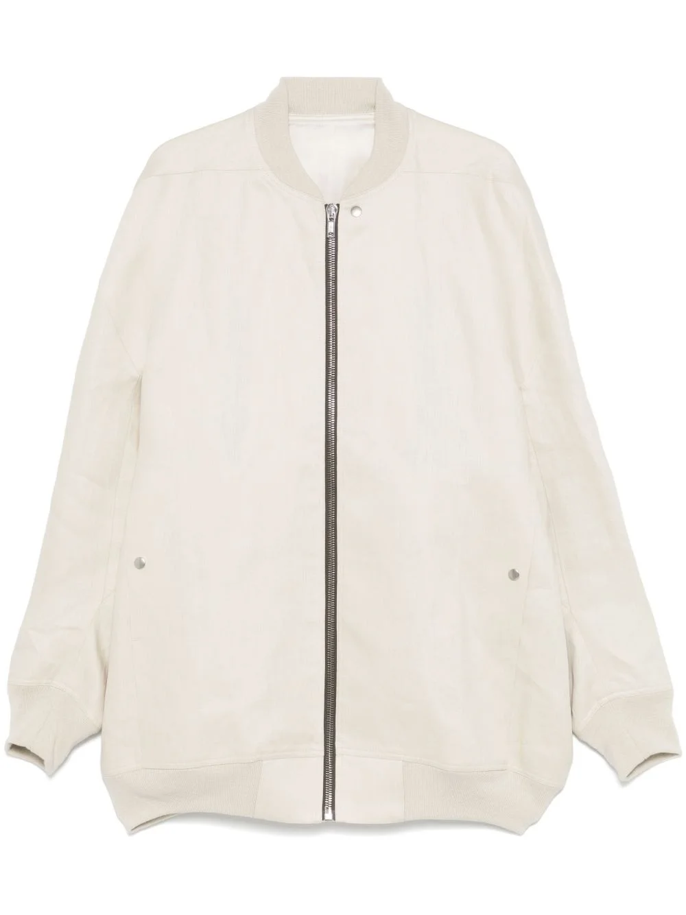 Jumbo Flight jacket Highlights - Ecru - Front press-stud and zip fastening - Two press-stud fastening side pockets - Ribbed cuffs and hem - Long sleeves Made in Italy Composition Outer: Wool 100%, Linen/Flax 100% Lining: Cupro 100%, Cotton 100% SIZE & FIT Model measurements Height 6 ft 2 in(1.87 m) Bust/Chest 38.18 in(97 cm) Hips 36.61 in(93 cm) Waist 29.13 in(74 cm) FittingInformation Designed for an oversized fit, offering additional room throughout The ribbed hem offers a close, comfortable fit Made from a midweight non-stretch fabric