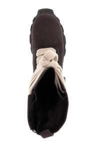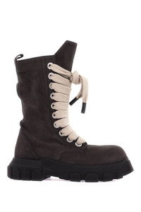 The Jumbolace Army boots by Rick Owens are made of nubuck leather and feature oversized laces and tongue. They have a side zip closure, leather interior, rear pull tab, and Tractor rubber sole. PRODUCT DETAILS Made In: Italy Composizione: 100% bull leather Heel Height: 5,5 cm Sole: Rubber Supplier Color Code: DARK DUST/DARK DUST Supplier Code: RU02D6879 LWNW2 FTA: No Season: SS25
