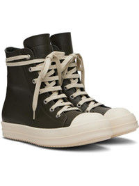 High-top LWG-certified buffed leather sneakers. · Calfskin cap toe · Lace-up closure · Zip closure and metal eyelets at inner side · Buffed calfskin lining · Treaded rubber sole Supplier color: Bosco/Milk/Milk Upper: leather. Sole: rubber. Made in Italy 252232M236055