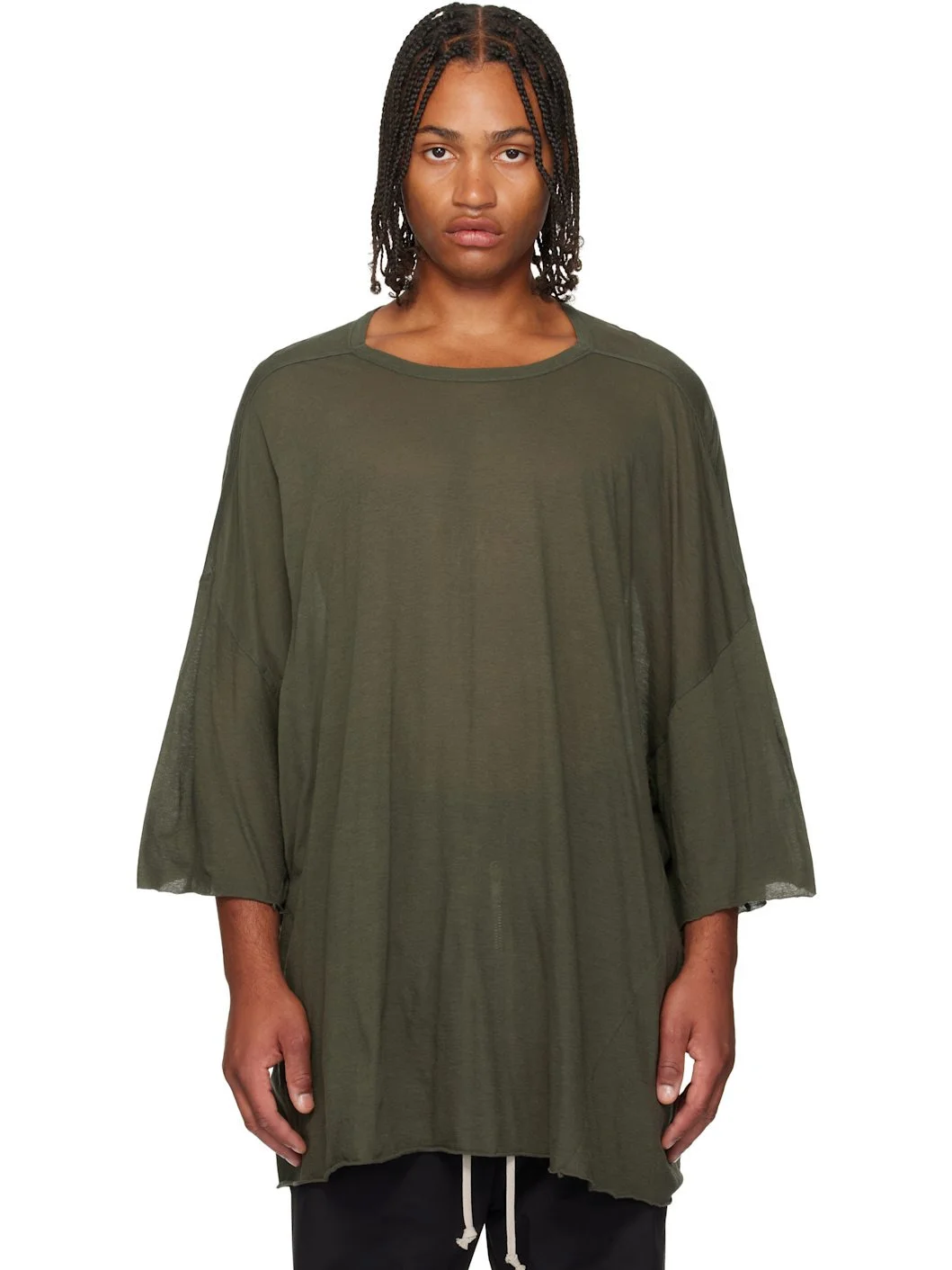 Lightweight cotton jersey T-shirt. · Oversized · Rib-knit crewneck · Offset shoulder seams · Curved side seams · Raw edge at hem Supplier color: Bosco 100% cotton. Made in Italy 252232M213031