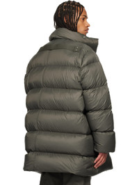 Down-filled and quilted recycled nylon satin coat. · Press-stud fastening at funnel neck · Offset zip closure · Welt pockets at waist · Inset rib-knit cuffs · Riveted webbing strap at back · Zip pockets at interior · Fully lined · Logo-engraved silver-tone hardware Supplier color: Bosco Body: 100% polyamide. Trim 1: 100% virgin wool. Trim 2: 97% cotton, 3% elastane. Fill: 90% goose down, 10% mallard feathers. Made in Italy 252232M178006