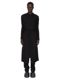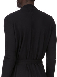 RICK OWENS FOREVER BATHROBE IN BLACK BOILED CASHMERE THIS BATHROBE HAS A SLIGHTLY OVERSIZED FIT, IS MID-CALF LENGTH, WRAPS AT FRONT AND SECURES WITH A BELT THIS SOFT CASHMERE KNIT IS MADE FROM RECYCLED YARNS - FLAGSHIP STORES AND ONLINE EXCLUSIVE ITEM- COLOR: BLACK- MATERIAL: 100% CASHMERE- MODEL IS WEARING SIZE: S - MODEL IS 189CM TALL