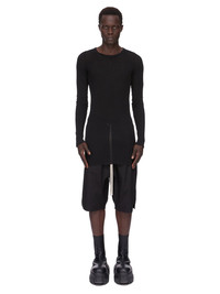 RICK OWENS FOREVER RIB LS T IN BLACK MINI RIB JERSEY THIS RIB LS T IS BELOW HIP LENGTH WITH A SLIM FIT AND LONG SLEEVES. IT HAS A RIBBED ROUND NECK, RAW CUT HEM AND CUFFS, AND FEATURES THE SIGNATURE SINGLE SEAM RUNNING DOWN CENTRE BACK SPINE THIS LIGHTWEIGHT MINI RIB JERSEY HAS A TEXTURED SURFACE AND SOFT HANDFEEL. THIS JERSEY IS MADE USING GOTS CERTIFIED ORGANIC COTTON WHICH MEANS THE NATURAL FIBER IS GROWN WITHOUT HARMFUL CHEMICALS, LEAVING OUR SOIL, AIR AND WATER CLEANER FROM CONTAMINATES WE STRIVE TO KEEP OUR PRODUCTION AS LOCAL AS POSSIBLE. THE FULL MANUFACTURING CYCLE OF THIS PRODUCT, FROM THE MATERIAL KNITTING TO SEWING AND FINISHING, WAS UNDERTAKEN CLOSE TO OUR HOME BASE IN CONCORDIA, ITALY. - COLOR:BLACK - MATERIAL: 100% COTTON - MODEL IS WEARING SIZE S - MODEL IS 189 CM TALL