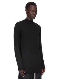 RICK OWENS FOREVER LEVEL LUPETTO SWEATER IN BLACK LIGHTWEIGHT RASATO KNIT THIS LEVEL LUPETTO IS HIP LENGTH WITH LONG SLEEVES. IT HAS A SMALL FUNNEL NECK, WITH RIBBED NECK, CUFFS AND HEM. IT FEATURES SIGNATURE LEVEL SHOULDER SEAMS AND A KNIT LINE RUNNING DOWN THE CENTRE BACK SPINE THIS IS A LIGHTWEIGHT AND SOFT CLASSIC STITCH CASHMERE KNIT - FLAGSHIP STORES AND ONLINE EXCLUSIVE ITEM- COLOR: BLACK- MATERIAL: 100% CASHMERE- MODEL IS WEARING SIZE S- MODEL IS 189CM TALL