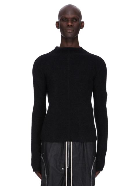 RICK OWENS FW25 CONCORDIANS CREWNECK IN MILK ALPACA KNIT THIS HEADON PULL IS ABOVE HIP LENGTH WITH LONG SLEEVES. IT HAS A SLIGHT LUPETTO ROUND NECK, KNIT LEVEL SHOULDER SEAMS, LINE RUNNING DOWN THE CENTRE FRONT AND SIGNATURE KNIT CHANNEL RUNNING DOWN THE CENTRE BACK SPINE THIS A DENSE BUT LIGHT KNIT WITH A SOFT SLIGHTLY FLUFFY HAND COLOR: MILK MATERIAL: 48% ALPACA + 30% NYLON + 20% WOOL + 2% ELASTANE MODEL IS 189CM TALL MODEL WEARS SIZE M
