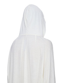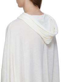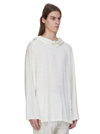 RICK OWENS FW25 CONCORDIANS RUNWAY HOODED TUNIC IN NATURAL SILK WOOL JERSEY THIS HOODED TUNIC IS HIP LENGTH WITH LONG SLEEVES. IT HAS A LARGE HOOD THAT DRAPES AT THE FRONT NECK, AND A WIDE SQUARE BODY THIS LIGHTWEIGHT SILK AND WOOL BLEND JERSEY HAS A SOFT HANDFEEL AND SEMI SHINY SURFACE THIS JERSEY IS MADE FROM RWS CERTIFIED VIRGIN WOOL WHICH ENSURES A HIGH STANDARD IN ANIMAL WELFARE, ENVIRONMENTAL SUSTAINABILITY AND SOCIAL RESPONSIBILITY. EACH BALE OF WOOL IS TRACEABLE BACK TO ITS SOURCE WE STRIVE TO KEEP OUR PRODUCTION AS LOCAL AS POSSIBLE. THE FULL MANUFACTURING CYCLE OF THIS PRODUCT, FROM THE MATERIAL KNITTING TO SEWING AND FINISHING, WAS UNDERTAKEN CLOSE TO OUR HOME BASE IN CONCORDIA, ITALY COLOR: NATURAL MATERIAL: 70% NEW WOOL + 30% SILK MODEL IS 189CM TALL ITEM IS AVAILABLE IN ONE SIZE