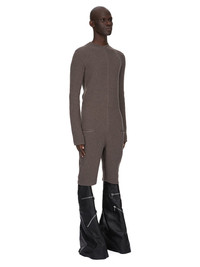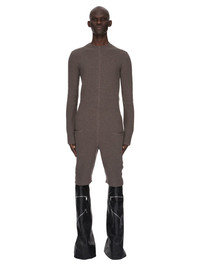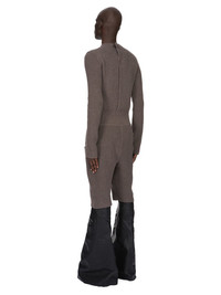 RICK OWENS FW24 PORTERVILLE RUNWAY HEADON FLIGHTSUIT IN DUST RECYCLED CASHMERE KNIT THIS HEADON FLIGHTSUIT IS KNEE LENGTH. IT IS AN ALL-IN-ONE WITH LONG SLEEVES, A ROUND NECK AND A CENTRE BACK OPENING. IT HAS KNIT LEVEL SHOULDER SEAMS AND LINE RUNNING DOWN THE CENTRE FRONT, AND POUCH POCKETS ON THE SIDE FRONT THIS MEDIUMWEIGHT CASHMERE KNIT HAS A CLASSIC STITCH AND A SOFT HANDFEEL. IT IS MADE USING CERTIFIED RECYCLED CASHMERE BECAUSE IT FINDS A PURPOSE FOR RAW MATERIALS THAT WOULD OTHERWISE BE DISCARDED - COLOR: DUST - MATERIAL: 97% CASHMERE + 3% WOOL - MODEL IS 189CM TALL - MODEL WEARS SIZE M