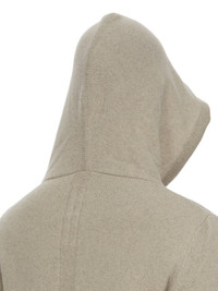 RICK OWENS FW23 LUXOR ZIPPED HOODIE IN PEARL RECYCLED CASHMERE KNIT THIS ZIPPED HOODIE IS BELOW HIP LENGTH, HAS LONG SLEEVES AND RIBBED CUFFS AND HEM. IT HAS A CENTRE FRONT ZIPPER, TWO FRONT POCKETS, A DRAWSTRING HOOD AND A SIGNATURE KNIT LINE RUNNING DOWN THE CENTRE BACK SPINE THIS SOFT CASHMERE KNIT IS MADE FROM RECYCLED CASHMERE - COLOR: PEARL - MATERIAL: 97% CASHMERE + 3% WOOL - MODEL IS WEARING SIZE S - MODEL IS 189 CM TALL