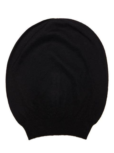 RICK OWENS FW25 CONCORDIANS RIBBED BEANIE IN BLACK NEW WOOL THIS RIBBED BEANIE IS A SMALL ROUNDED SHAPE IN A RIBBED KNIT, WITH A FOLDED UP EDGE. WHEN WORN IT FITS SNUGLY TO THE HEAD THIS LIGHTWEIGHT AND CLASSIC STITCH WOOL KNIT HAS A SOFT HANDFEEL COLOR: BLACK MATERIAL: 100% NEW WOOL