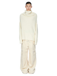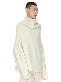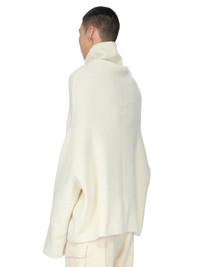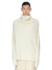 RICK OWENS FW25 CONCORDIANS SHROUD IN MILK ALPACA KNIT THIS SHROUD IS MID THIGH LENGTH AND FEATURES A DRAPED TUBULAR NECK THAT WIDENS INTO SHOULDERS AND FALLS TO LOW ARMHOLES WITH LONG SLEEVES. IT HAS A SIGNATURE KNIT CHANNEL RUNNING DOWN THE CENTRE BACK SPINE THIS A DENSE BUT LIGHT KNIT WITH A SOFT SLIGHTLY FLUFFY HAND COLOR: MILK MATERIAL: 48% ALPACA + 30% NYLON + 20% WOOL + 2% ELASTANE MODEL IS 189CM TALL MODEL WEARS SIZE L