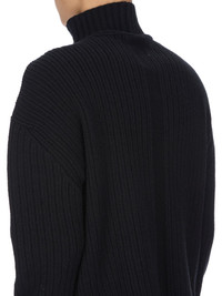 RICK OWENS FW25 CONCORDIANS TURTLE NECK IN BLACK HEAVY WOOL KNIT THIS TURTLE NECK IS HIP LENGTH WITH LONG SLEEVES. IT FEATURES A RIBBED TURTLE NECK, HEM AND CUFFS. IT HAS A SIGNATURE KNIT LINE RUNNING DOWN THE CENTRE BACK SPINE THIS IS A HEAVY WOOL FISHERMAN KNIT COLOR: BLACK MATERIAL: 100% NEW WOOL MODEL IS 189CM TALL MODEL WEARS SIZE M