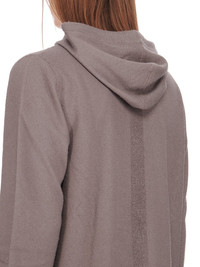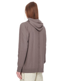 RICK OWENS FW22 STROBE ZIPPED HOODIE IN BOILED CASHMERE KNIT THIS ZIPPED HOODIE IS BELOW HIP LENGTH, HAS LONG SLEEVES AND RIBBED CUFFS AND HEM. IT HAS A CENTRE FRONT ZIPPER, TWO FRONT POCKETS, A DRAWSTRING HOOD AND A SIGNATURE KNIT LINE RUNNING DOWN THE CENTRE BACK SPINE THIS CASHMERE KNIT IS FINISHED WITH AN ARTISANAL TREATMENT TO ACHIEVE THE LOFTY AND SOFT HANDFEEL - COLOR: DUST - MATERIAL: 100% CASHMERE - MODEL IS WEARING SIZE 48 - MODEL IS 189 CM TALL