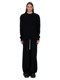 RICK OWENS FW24 PORTERVILLE FISHERMAN ROUND NECK IN BLACK HEAVY WOOL KNIT THIS FISHERMAN ROUND NECK IS HIP-LENGTH, WITH LONG SLEEVES AND A LOOSE ROUNDED FIT. IT HAS A RIBBED ROUND NECK, COLLAR AND CUFFS, LEVEL SHOULDER SEAMS, SLIGHT SPLITS AT THE SIDE SEAM HEM AND SIGNATURE KNIT CHANNEL RUNNING DOWN THE CENTRE BACK SPINE THIS IS A HEAVY WOOL FISHERMAN KNIT. - COLOR: BLACK - MATERIAL: 100% NEW WOOL - MODEL IS 189CM TALL - MODEL WEARS SIZE M