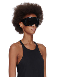 RICK OWENS KRIESTER SUNGLASSES THESE KRIESTER SUNGLASSES ARE LARGE CURVED WRAP AROUND FRAMES WITH A SINGLE VOLUMINOUS CURVED LENS. THEY HAVE THICK ANGLED ARMS AND THE RICK OWENS LOGO ON THE RIGHT SIDE - COLOR: BLACK- MATERIAL: 100% NYLON -NOT SUITABLE FOR CONVERSION INTO PRESCRIPTION GLASSES