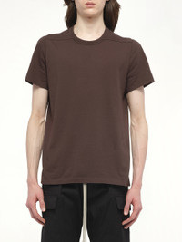 Rick Owens's Short Level T in Dark Dust is a distinctive piece that embodies the designer's avant-garde aesthetic. This T-shirt offers a unique silhouette and a versatile colour, making it a staple for any modern wardrobe. - Composition: 100% Cotton - Unique silhouette with a relaxed fit - Signature Rick Owens design elements - Versatile for layering or standalone wear - Ideal for contemporary and edgy styling Model is 187 cm and wears size M SKU: RU02E1265 JA 78