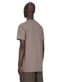 RICK OWENS FW25 CONCORDIANS LEVEL T IN DUST CLASSIC COTTON JERSEY THIS LEVEL T IS HIP LENGTH WITH SHORT SLEEVES AND A RIBBED ROUND CREWNECK. IT FEATURES THE SIGNATURE LEVEL SHOULDER SEAMS AND SINGLE SEAM RUNNING DOWN THE CENTRE BACK SPINE THIS MEDIUMWEIGHT CLASSIC COTTON JERSEY IS COMPACT WITH A DRY HANDFEEL THIS JERSEY IS MADE USING GOTS CERTIFIED ORGANIC COTTON WHICH MEANS THE NATURAL FIBER IS GROWN WITHOUT HARMFUL CHEMICALS, LEAVING OUR SOIL, AIR AND WATER CLEANER FROM CONTAMINATES WE STRIVE TO KEEP OUR PRODUCTION AS LOCAL AS POSSIBLE. THE FULL MANUFACTURING CYCLE OF THIS PRODUCT, FROM THE MATERIAL KNITTING TO SEWING AND FINISHING, WAS UNDERTAKEN CLOSE TO OUR HOME BASE IN CONCORDIA, ITALY COLOR: DUST MATERIAL: 100% COTTON MODEL IS 189CM TALL MODEL WEARS SIZE S