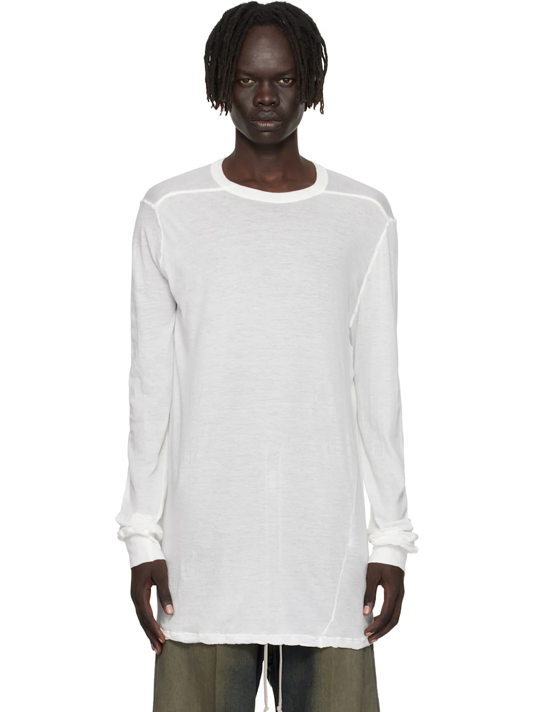 Semi-sheer organic cotton jersey T-shirt. · GOTS-certified organic cotton · Rib-knit crewneck and cuffs · Twisted side seams · Offset seam at shoulders Supplier color: Milk 100% organic cotton. Made in Italy 252232M213084