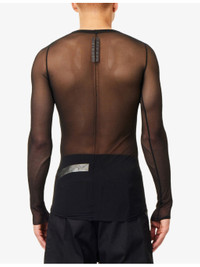 PRODUCT DETAILS - Rick Owens stretch-mesh T-shirt - 93% polyamide, 7% elastane - Slim fit, round neck, ribbed trim at neck, long sleeves, all-over mesh design - Hand wash - Made in Italy - Model is 6ft 2in/1.88m and wears a size medium - Lightweight, slight stretch Ref: R04557945