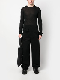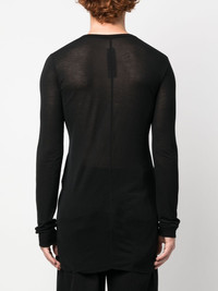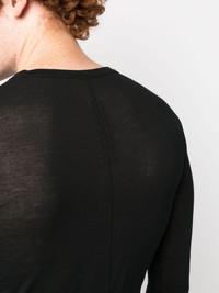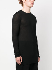 long-sleeved marl-knit T-shirt Highlights - Black - Marl knit - Crew neck - Extra-long sleeves - Long length - Straight hem Made in Italy Composition Viscose 88%, Silk 12% SIZE & FIT Model measurements Height 6 ft 1 in(1.86 m) Bust/Chest 37.79 in(96 cm) Hips 38.58 in(98 cm) Waist 33.85 in(86 cm) FittingInformation Designed for a slim fit, offering a comfortable fit that sits just away from the body Made from a lightweight non-stretch fabric, this piece offers minimal elasticity when worn This piece fits true to size – take your usual size Washing instructions Hand Wash