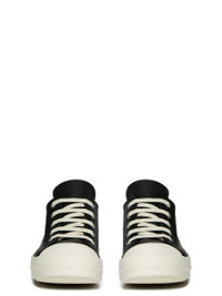 RICK OWENS SS26 TEMPLE EXTREME LOW SNEAKS IN BLACK/MILK/MILK FULL GRAIN CALF LEATHER THESE EXTREME LOW SNEAKS ARE CUT EXTRA LOW UNDER THE ANKLE, RISING AT THE BACK AND FEATURE FIVE EYELETS, LACES, SIX SIDE VENTS, TOE CAPS AND SHARK-TOOTHED BUMPER SOLES. THIS MEDIUMWEIGHT FULL GRAIN CALF LEATHER HAS A FLAT AND MATTE SURFACE FINISH AND IS SPECIFICALLY TANNED FOR SHOES WITH AN ABRASION-RESISTANT FINISH. THIS TANNERY IS LWG CERTIFIED WITH A BRONZE RATING. COLOR: BLACK/MILK/MILK MATERIAL:UPPER 100% COW LEATHER TOE 100% CALF LEATHER LINING 100% CALF LEATHER INSOLE 100% CALF LEATHER SOLE 100% THERMOPLASTIC RUBBER SOLE HEIGHT 3.5CM
