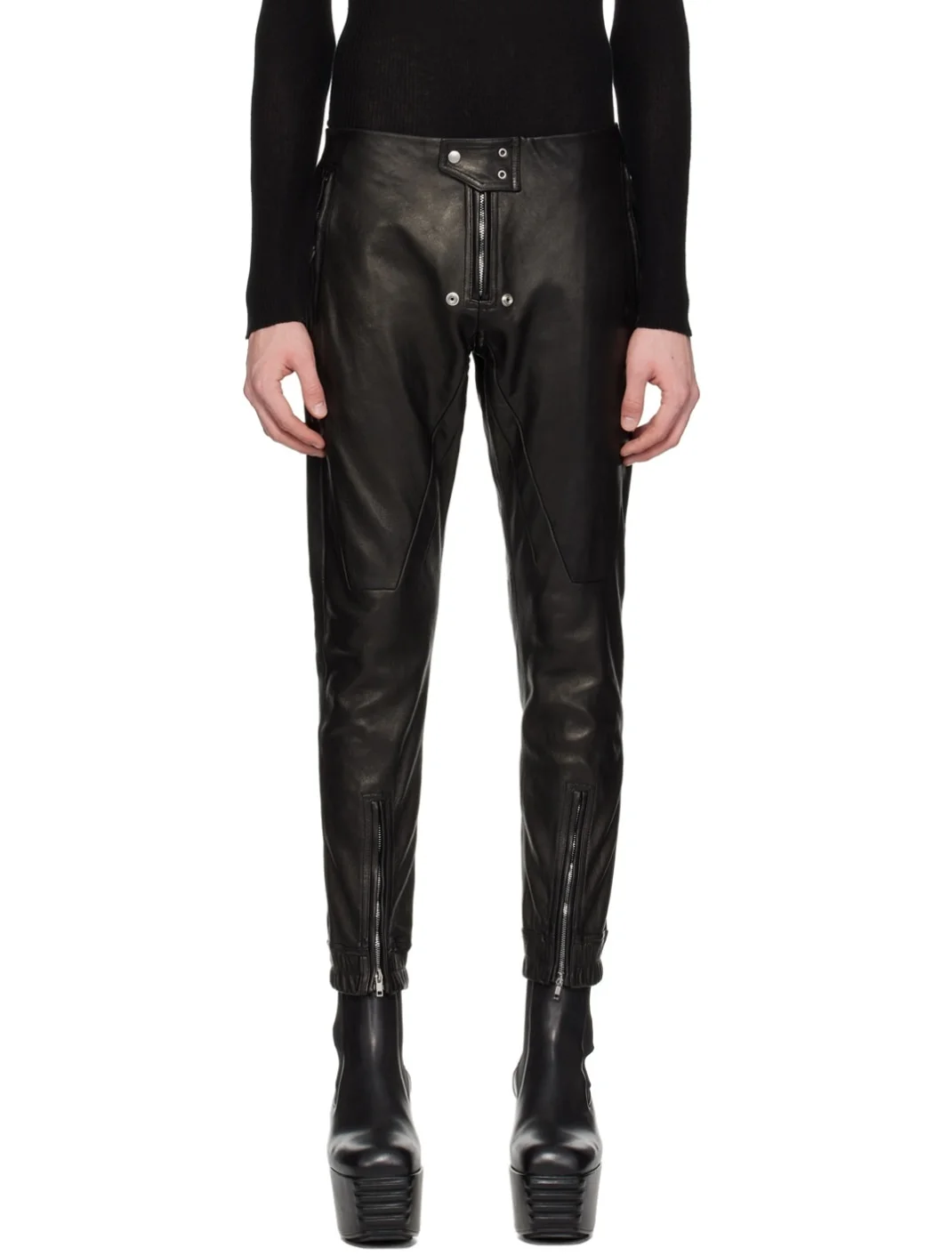 Grained lambskin pants. · Paneled construction · Partially elasticized waistband · Four-pocket styling · Press-stud tab at zip-fly · Eyelets at inseam · Zip vent at elasticized cuffs · Full cupro satin lining Supplier color: Black Body: 100% lambskin. Lining: 100% cupro. Made in Moldova 241232M189011