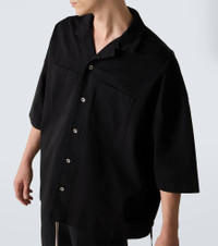 Aptly nicknamed The Lord of Darkness, Rick Owens brings gothic and industrial inspiration to avant-garde design. The Magnum Tommy shirt is made from cotton twill and comes in an oversized silhouette. Product Details - Material: 100% cotton - Care instructions: hand wash - Made in Italy - Designer color name: Black - Item color: black - Collar: Cuban - Closure: buttoned placket - Pockets: patch pockets - Side slits - Includes: dust bag - Item number: P01057255 Size & Fit - True to size - Dropped shoulders - Oversized - Non-stretchy fabric - Falls below the hip - The model in the picture is 185cm-6'1" and wearing a size L