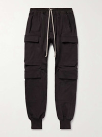 Rick Owens' trademark 'Mastodon' trousers are updated in a comfortable heavyweight cotton-jersey. Fitted with signature elongated drawstrings, they're cut for a tapered fit and have plenty of practical cargo pockets on each leg Size & Fit - Fits true to size. Take your normal size - Tapered leg, low-crotch style - Adjustable at the waist - Mid-weight, stretchy fabric - Model is shown wearing an IT 46 - Model measures: waist size 30, height 6'1"/ 185cm Details & Care - Charcoal cotton-jersey - Button fastenings - 100% cotton; buttons: 100% horn (Buffalo); lining: 100% cupro - Hand wash - Designer colour: Dark Dust