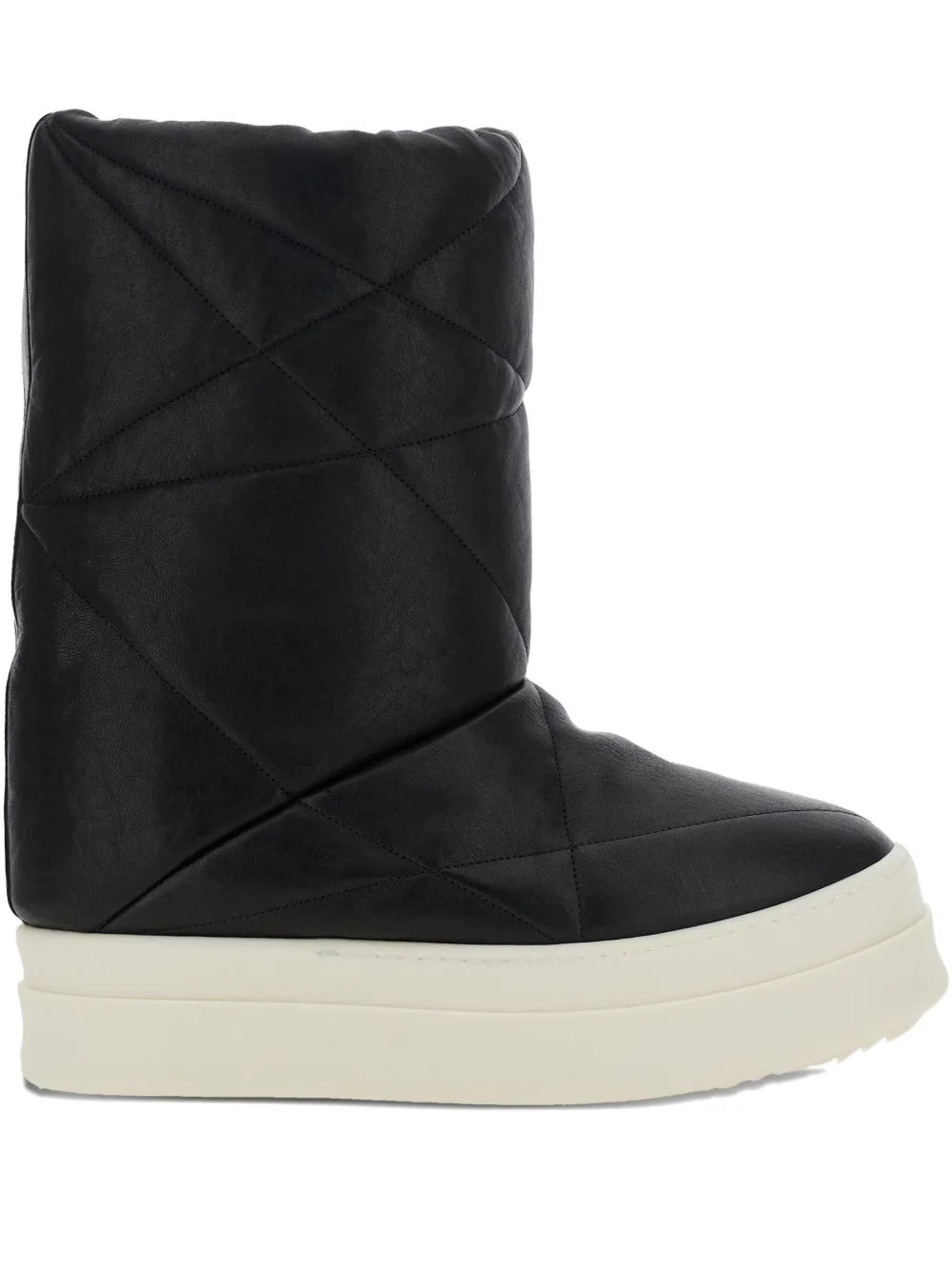 quilted leather boots Highlights - Black - Quilted leather - Padded design - Flat sole - Round toe - Pull-on style Imported Composition Outer: Leather 100% Sole: Rubber 100% Lining: Fabric 100%