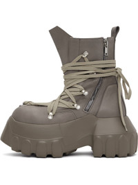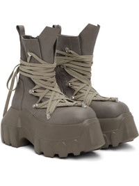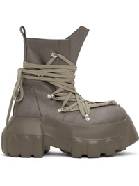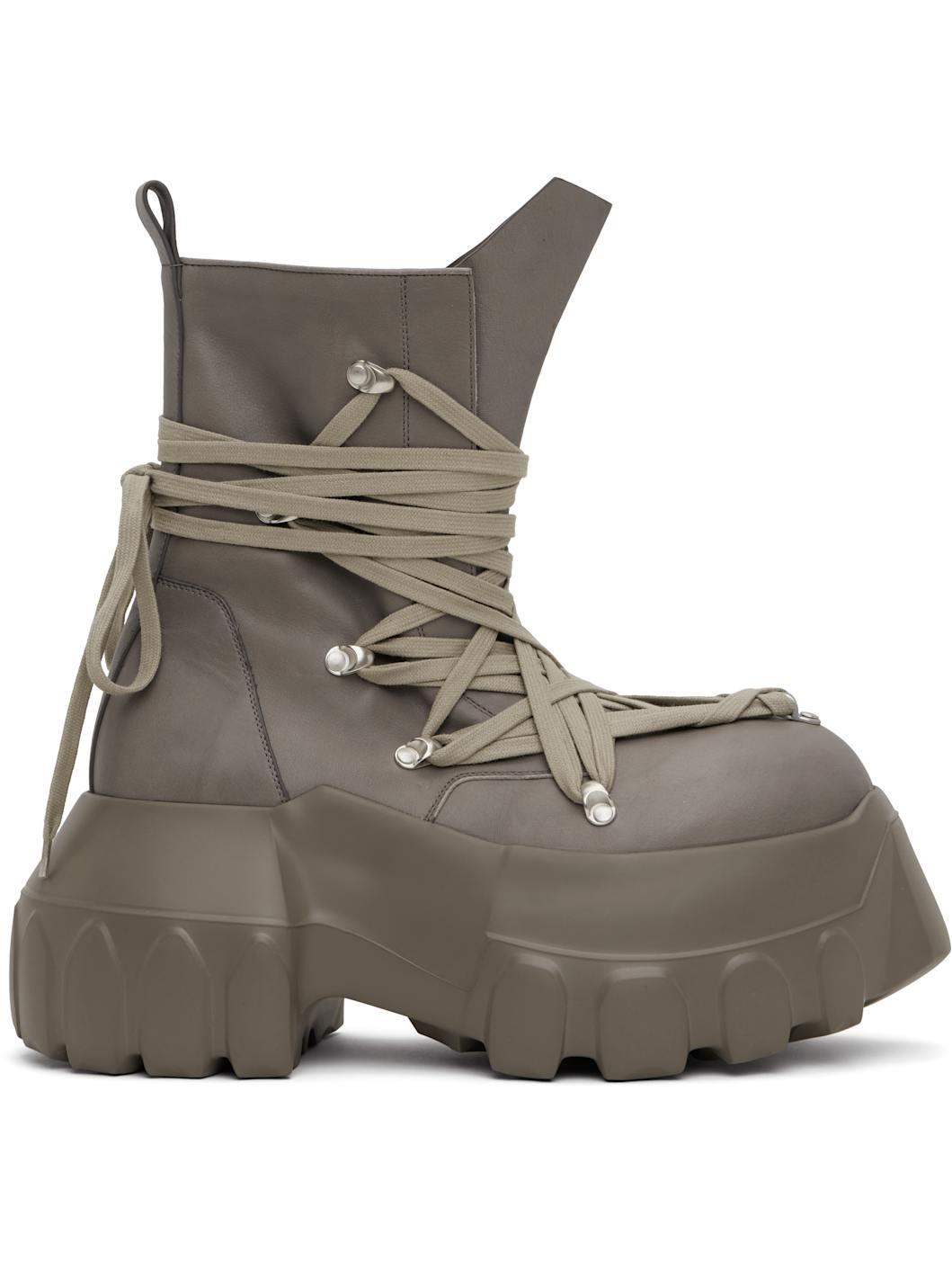Ankle-high vegetable-tanned and grained calfskin boots in gray. · LWG-certified calfskin · Wraparound lace-up closure · Extended tongue · Zip closure at inner side · Pull-loop at heel collar · Buffed calfskin lining · Treaded rubber platform sole · Platform: H3.5" Supplier color: Dust/Dust Upper: calfskin. Sole: rubber. Made in Italy 251232M255004