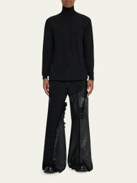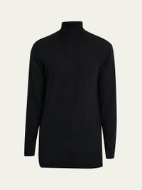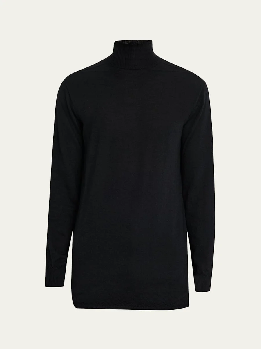 Boasting a lightweight and classic stitch knit, this Rick Owens sweater features signature level shoulder seams and a knit line running down the center back spine Turtleneck Long sleeves; ribbed cuffs Hits below the hips Loose fit Pullover style Cashmere Made in Italy Online Inquiries: BGS21_NEQT2| Store Inquiries: #5452372
