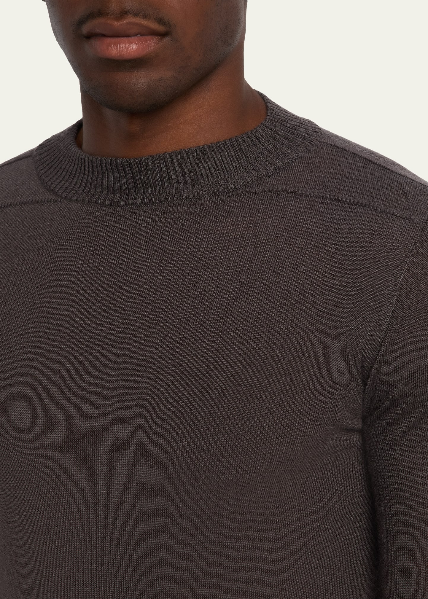 Rick Owens sweater crafted from premium knit cashmere with a modern saddle shoulder Ribbed crew neckline Long sleeves Ribbed cuffs and hem Pullover style Slim fit Cashmere Hand wash Made in Italy Online Inquiries: BGS21_NDQJA| Store Inquiries: #5067150