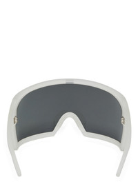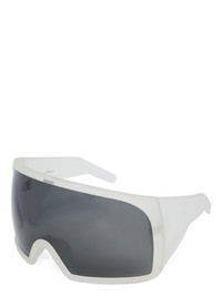 RICK OWENS KRIESTER SUNGLASSES THESE KRIESTER SUNGLASSES ARE LARGE CURVED WRAP AROUND FRAMES WITH A SINGLE VOLUMINOUS CURVED LENS. THEY HAVE THICK ANGLED ARMS AND THE RICK OWENS LOGO ON THE RIGHT SIDE - COLOR: TRASP.TEMPLE/BLK LENS - MATERIAL: FRAME 100% GRILAMID TR90 - LENSES 100% NYLON -NOT SUITABLE FOR CONVERSION INTO PRESCRIPTION GLASSES