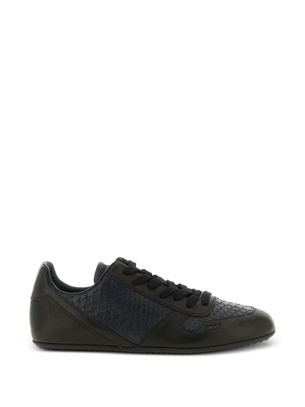 Minimal leather sneakers Highlights - Black - Python-effect - Lace-up closure - Shark-tooth rubber sole - Leather panelling Made in Italy Composition Outer: Lamb Skin 100% Lining: Calf Leather 100% Sole: Rubber 100%