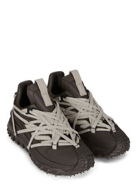 MONCLER + RICK OWENS SS26 TRAILGRIP MEGALACE® IN DARK DUST MEDIUMWEIGHT FULL GRAIN CALF LEATHER THIS MONCLER + RICK OWENS TRAILGRIP MEGALACE® IS AN UNDER-ANKLE HEIGHT LEATHER SNEAKER WITH A MESH LINING. THEY HAVE A CUSHIONED BACK THAT RISES TO A POINT, CURVED OVERLAPPING PANELS, AND A BEVELED TONGUE WITH WEBBING DETAIL. THEY FEATURE THE SIGNATURE MEGALACE® DETAIL IN A PENTAGRAM SHAPE OVER THE FRONT. THEY HAVE A TPU SPOILER, AN EVA MIDSOLE, FOR FLEXIBILITY AND LIGHTNESS, WITH A SPECIAL VIBRAM® MEGAGRIP RUBBER COMPOUND TREAD, WITH TOOTHED GRIP FOR TRACTION AND DURABILITY AND FEATURE AN ORTHOLITE® INSOLE. THEIR SOLE HEIGHT IS 4.5 CM THIS MEDIUMWEIGHT FULL GRAIN CALF LEATHER HAS A MATTE SURFACE AND A NATURAL HANDFEEL. COLOR: DARK DUST MATERIAL: UPPER 100% COW LEATHER OUTER UPPER 100% NYLON LINING 100% NYLON SOLE 100% RUBBER