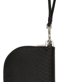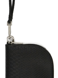 RICK OWENS SS26 TEMPLE NECKWALLET IN BLACK BLACK PYTHON THIS NECK WALLET IS RECTANGULAR AND HAS ONE ROUNDED CORNER AND A ZIPPER CLOSURE. IT HAS A D-RING, A DETACHABLE TUBULAR CROSSBODY STRAP WITH A SMALL PALLADIUM TONE BRASS HOOK. INSIDE, IT FEATURES FOUR CREDIT CARD SLOTS. THIS GENUINE PYTHON SNAKESKIN HAS A WAXY AND SOFT HAND FEEL. IT IS COLORED IN A DIAMOND PATTERN FOLLOWING THE NATURAL SCALES OF THE PYTHON. EACH STEP OF THE COLORING PROCESS IS EXECUTED BY HAND. PYTHON IS PROTECTED BY THE CITIES AGREEMENT AND REGULATIONS, WHICH MEANS EACH SKIN CAN BE TRACED BACK TO ITS ORIGIN. THIS TANNERY IS LWG CERTIFIED WITH A SILVER RATING. COLOR: BLACK MATERIAL:100% PYTHON LEATHER LINING 100% LAMB LEATHER WIDTH 11CM HEIGHT 18CM DEPTH 1CM
