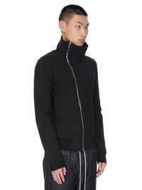 RICK OWENS FW25 CONCORDIANS BAUHAUS JOGGER IN BLACK HEAVY JERSEY THIS BAUHAUS JOGGER IS HIP LENGTH WITH LONG SLEEVES. IT HAS A SLIGHTLY ASYMMETRICAL, OFF CENTRE, ZIPPER CLOSURE RUNNING FROM CENTRE FRONT HEM TO THE RIGHT CHEEK. WHEN ZIPPED UP IT HAS A FUNNEL NECK WHICH, WHEN UNZIPPED, BECOMES A WIDE DRAPED COLLAR. IT HAS SIDE SEAM POCKETS, LEVEL SHOULDER SEAMS, RIBBED CUFFS AND WAISTBAND, WHICH IS WIDER AT BACK THIS HEAVYWEIGHT JERSEY IS COMPACT WITH A DRY HANDFEEL THIS JERSEY IS MADE USING GOTS CERTIFIED ORGANIC COTTON WHICH MEANS THE NATURAL FIBER IS GROWN WITHOUT HARMFUL CHEMICALS, LEAVING OUR SOIL, AIR AND WATER CLEANER FROM CONTAMINATES COLOR: BLACK MATERIAL: 100% COTTON MODEL IS 189CM TALL MODEL WEARS SIZE S