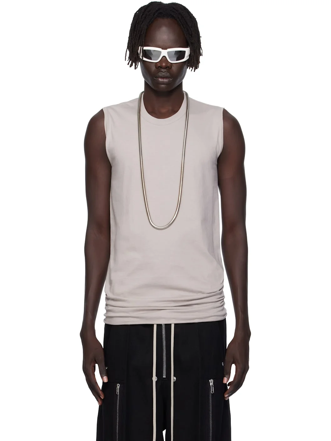 Organic cotton jersey tank top. · Rib-knit crewneck · Rolled edge at hem and armscyes Supplier color: Pearl 100% cotton. Made in Italy 252232M214011