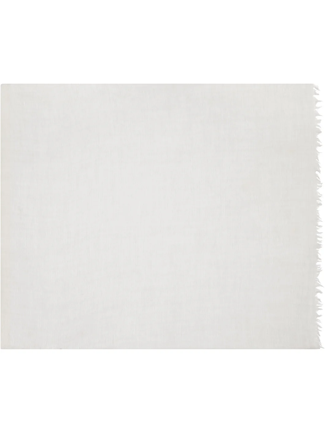 Rectangular knit virgin wool- and silk-blend scarf. · Frayed edge at ends · L79"x W55" Supplier color: Pearl 41% virgin wool, 30% silk, 29% cashmere. Made in Italy 252232M150006