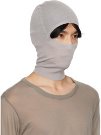 Knit virgin wool balaclava. · Lightweight · Cutout at face · Rib-knit trim at cutout and collar Face masks and face coverings are final sale and are not eligible for return or exchange. Supplier color: Pearl 100% virgin wool. Made in Italy 252232M138018