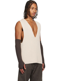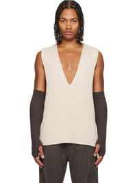 Rib-knit virgin wool sweater vest. · V-neck · Central garter-stitch stripe at back Supplier color: Natural 100% virgin wool. Made in Italy 252232M214031