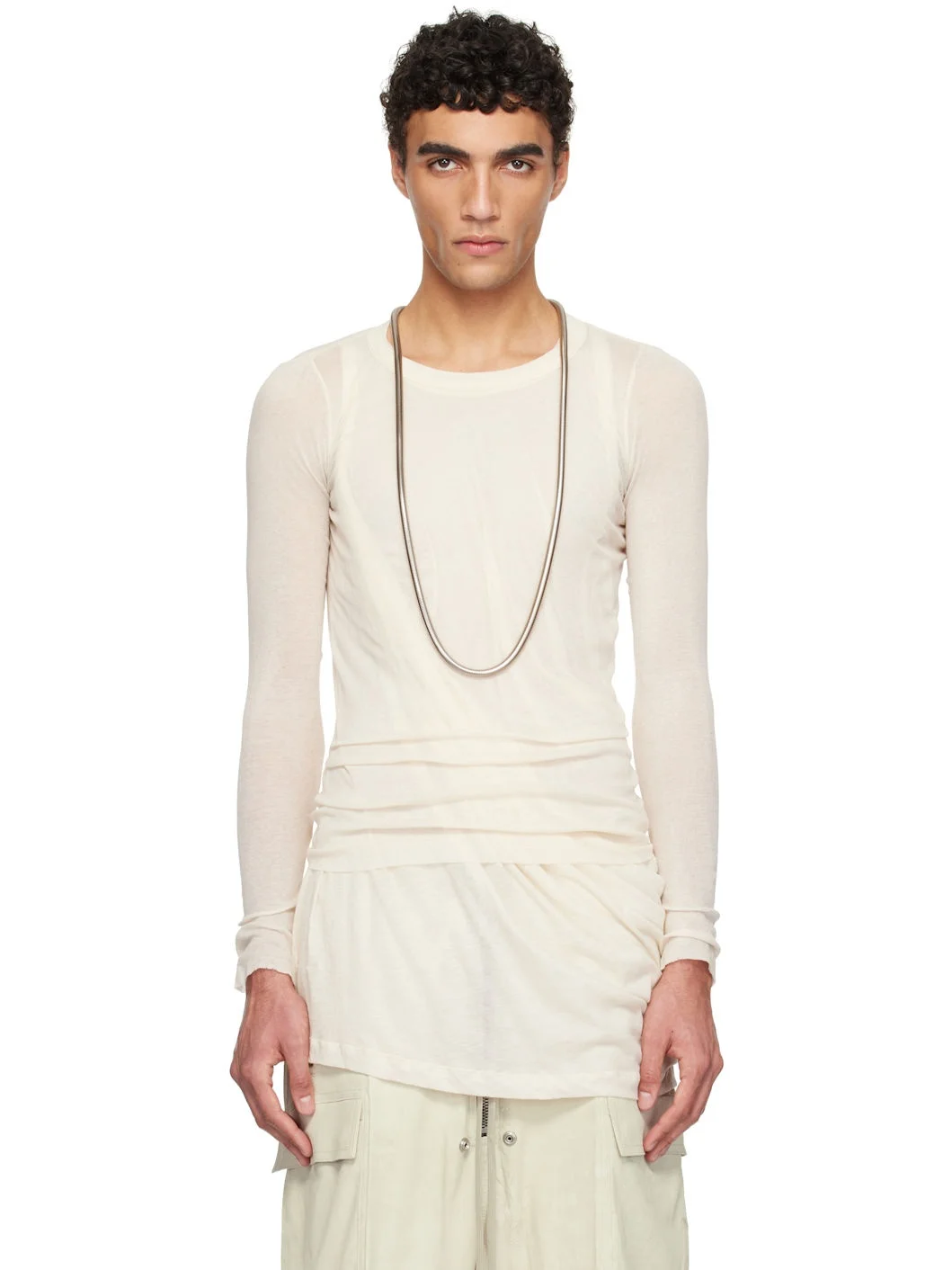 Semi-sheer organic cotton ribbed jersey T-shirt. · Rib-knit crewneck · Raw edge at hem and cuffs · Central seam at back Supplier color: Natural 100% organic cotton. Made in Italy 251232M213067