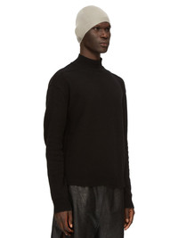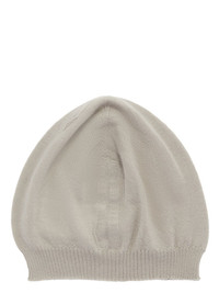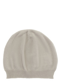 RICK OWENS FW24 PORTERVILLE HAT IN PEARL LIGHT WEIGHT RASATO KNIT THIS HAT IS A BEANIE WITH A SMALL ROUNDED SHAPE AND A RIBBED KNIT EDGE. WHEN WORN IT FITS CLOSELY TO THE HEAD THIS IS A LIGHTWEIGHT AND SOFT CLASSIC STITCH CASHMERE KNIT COLOR: PEARL MATERIAL: 100% CASHMERE MODEL IS 189CM TALL ITEM IS AVAILABLE IN ONE SIZE