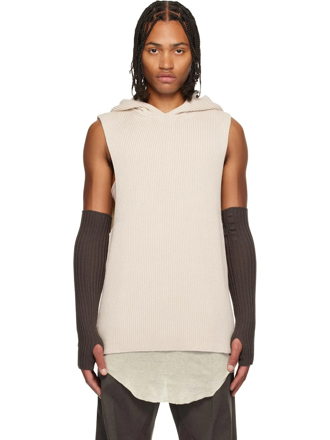Rib-knit virgin wool vest-style hoodie. Central garter-stitch stripe at back. Supplier color: Natural 100% virgin wool. Made in Italy 252232M202035