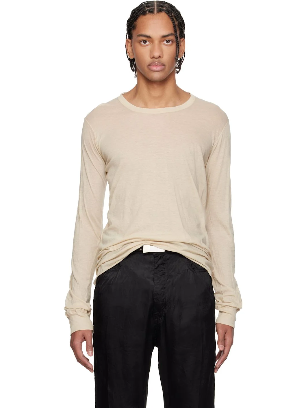 Lightweight organic cotton jersey T-shirt. · GOTS-certified organic cotton · Rib-knit crewneck and cuffs · Raw edge at hem · Offset central seam at back Supplier color: Sand 100% cotton. Made in Italy 261232M213025